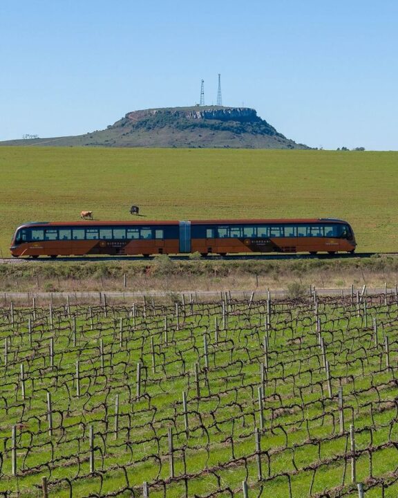 O pacote turístico “Trem do Pampa” é a nova atração do pampa gaúcho. Embarque em um trem versátil, moderno e confortável para contemplar e desfrutar das belezas naturais de Sant’Ana do Livramento e do Cerro de Palomas. Nessa experiência memorável você irá conhecer o terroir da região através da degustação de vinhos varietais tinto e branco, Cabernet Franc e Gewrstraminer, além do delicioso suco de uva.